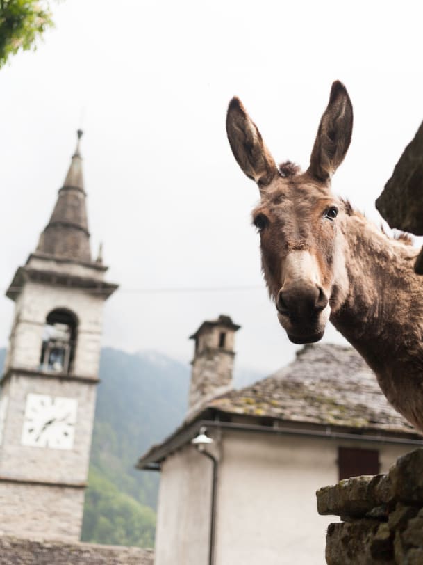 Aber hallo! In Comologno wird man auch mal von einem Esel begrüsst