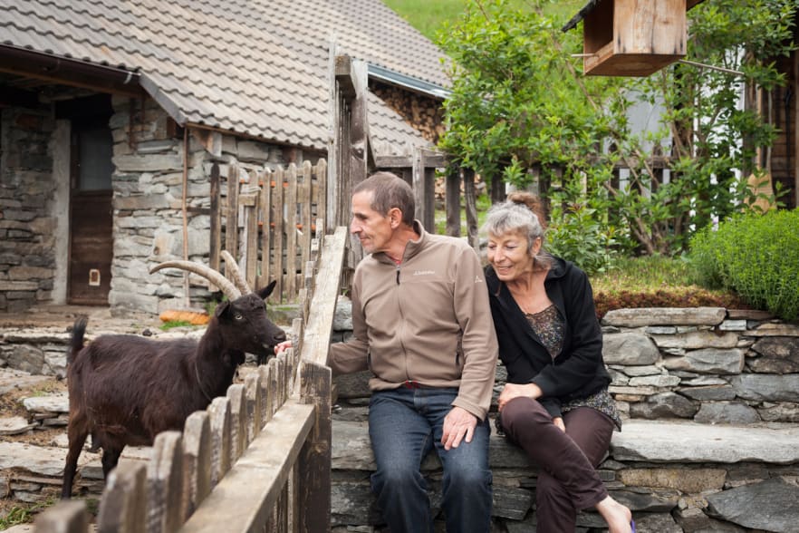 Die meisten Künstler sind nur ein paar Jahre geblieben – sie aber halten zum Onsernonetal in guten wie in schlechten Zeiten: Bauer Roger Rudin, Malerin Catherine Pollard (links),