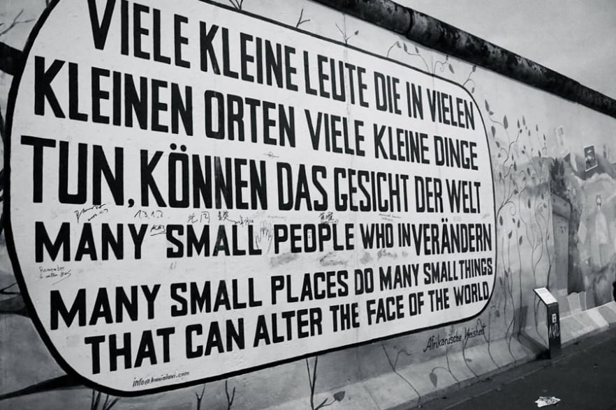 East Side Gallery Berlin: Sie präsentiert das längste übrig gebliebene Stück der Berliner Mauer. Im Jahre 1990 von Künstlern aus aller Welt bemalt, gilt die East Side Gallery als einzigartiges Welterbe. Weil die Mauer jedoch aufgrund von Bauplanungen verdrängt zu werden droht, sollte man sich nach Berlin sputen, solange sie noch steht.