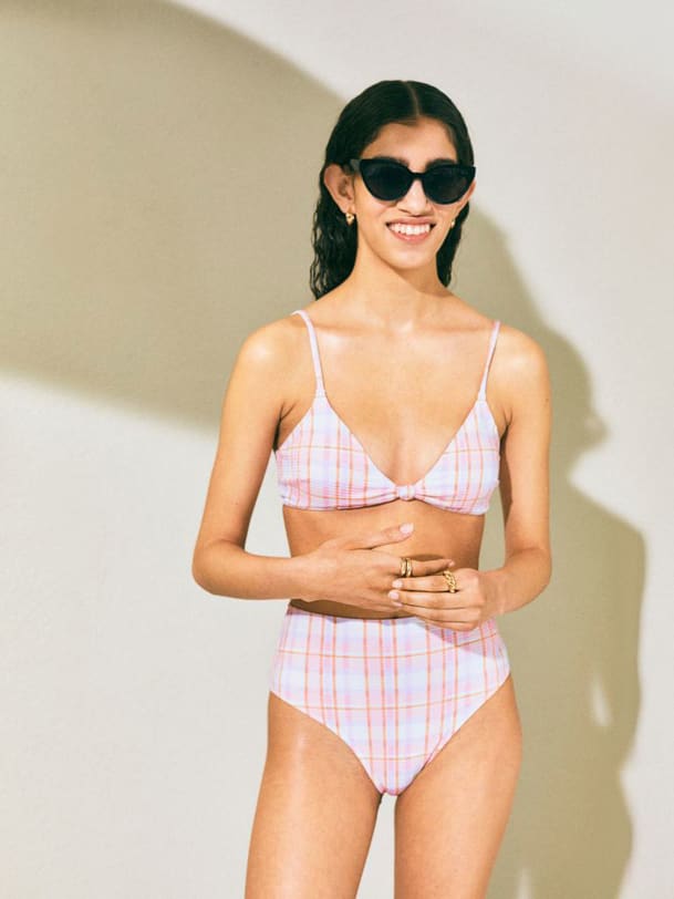 Wattiertes Bikinitop und Highwaist-Höschen mit Karomuster von H&M – statt ca. 50 Fr. jetzt noch ca. 30 Fr.
