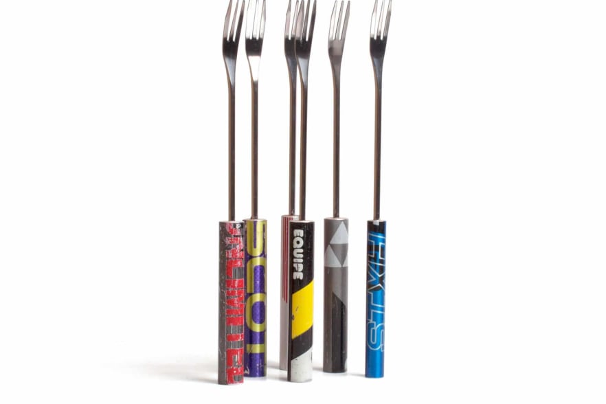 Diese Gabeln sorgen beim nächsten Fondue garantiert für Gesprächsstoff. Aus alten Skistöcken werden im Kanton Zürich von Hand einzigartige Fonduegabeln hergestellt. Upcyling vom Feinsten.