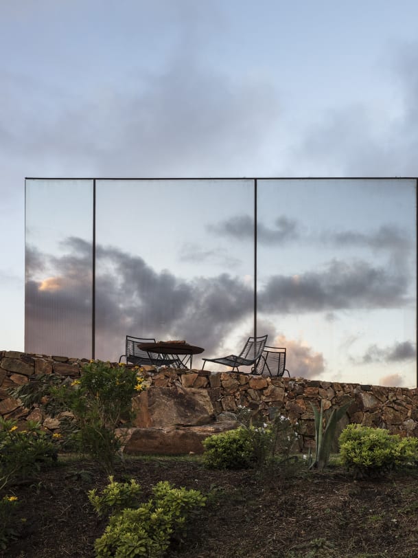 Wo beginnt der Himmel? Gleich hier nahe dem Dorf Pueblo Edén, dem Dorf Eden, so heisst diese Siedlung in Uruguay tatsächlich, bei dem das Sacromonte Landscape Hotel steht. Die 4 Bungalows, deren Fassaden mit dem Himmel zu verschmelzen scheinen, stehen an den schönsten Ecken und Enden auf dem Weingut Sacromonte. Aus dem steinigem Boden spriessen hier französische Reben wie Cabernet Sauvignon, Merlot, Syrah. Die containerartigen Bungalows sind alle schön und schlicht eingerichtet und verfügen über ein Cheminée. Verbunden sind sie mit Wegen, die durch die wilde Landschaft zum Restaurant mit Weinkeller führen, zur Réception mit angeschlossenem Weinladen und zur Panoramaterrasse, wo man die lokalen Tropfen mit umwerfender Aussicht verkosten kann.