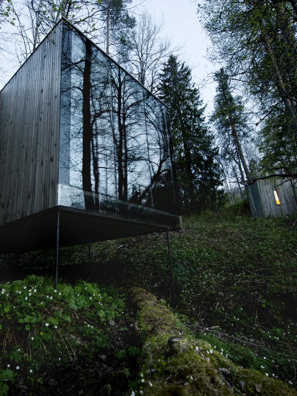 In diesem Wald in Westnorwegen sieht man überall kleine Häuser mit spiegelnden, grossen Fensterfassaden. Sie stehen auf Stelzen, die an Stämme erinnern, damit sie sich harmonisch einfügen in die dichte Baumlandschaft um sie herum. In diesen kleinen, schlicht und modern eingerichteten Gebäuden und in den noch kleineren Birdhouses, die das Hotel Juvet bilden, ist man Teil der Landschaft, die sich je nach Jahreszeit in eine völlig andere verwandelt. Zart knospende Bäume im Frühling, wogende dunkelgrüne Blätter im Sommer, gelbe Farbbatzen im Herbst, abgelöst von einer dicken winterlichen Schneedecke. Der Besitzer sagt jedoch: "Hier soll man die Natur nicht nur betrachten, sondern hautnah erleben, Teil von ihr werden." Etwa bei Skitouren, die in dieser Gegend fast das ganze Jahr über möglich sind, bei Wanderungen oder beim Riverrafting.