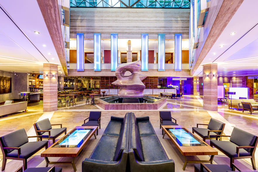 Nachdem man das Auto beim freundlichen Valet abgegeben hat, geht man wenige Stufen hinauf zum Eingang, schreitet über den glänzenden Marmorfussboden, erblickt die weltgrösste Henry-Moore-Skulptur und schaut dann unweigerlich nach oben: Die beeindruckende Raumhöhe der Lobby des "Intercontinental Miami" wurde zu Festlichkeiten auch schon für meterhohe Türme aus Champagnergläsern genutzt. Das erste Intercontinental- Hotel eröffnete 1949; mittlerweile umfasst die Luxushotelkette weltweit über 200 Standorte. Dieser Ableger im sonnigen Florida punktet vor allem mit seiner Lage mitten in Downtown Miami und dem gepimpten Eighties-Charme: Fassade genauso wie Lobby werden mit einem aufwendigen Lichtdesign und modernster, interaktiver Technologie bespielt.