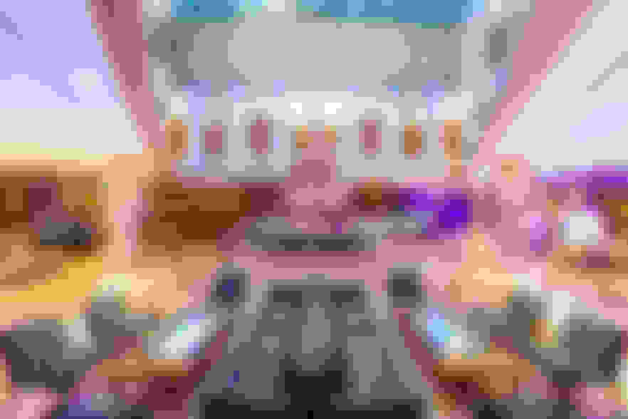 So bewegt wie das Meer vor den Fenstern des "Pattaya Hilton" ist auch die Decke seiner Hotellobby: Sanfte Wellen, die sich in der Maserung des Teppichs wiederholen. Darauf stehen schlichte, moderne Sofas und quadratische Elemente wie kleine Inseln, die Ruhe und Klarheit in den Empfangsraum bringen, der nicht etwa im Parterre, sondern im 17. Stock liegt, hoch über dem Treiben am Strand der thailändischen Küstenstadt Pattaya. Die weisse Stoffinstallation an der Decke, die von der Klimaanlage sanft in Bewegung versetzt wird, scheint die Besucher: innen beim Betreten der Lobby zu ergreifen und in Richtung des Meers zu treiben, auf dessen Weiten man von hier oben blickt. Und wenn es dunkel wird, leuchten Lichtbänder im Stoff, und die Decke wird zu einer riesigen, sanft schimmernden Lampe.