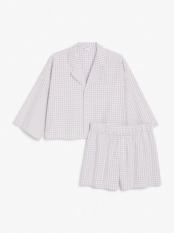 Cotton Pyjama Set in Purple and White 40 Fr. von Monki
