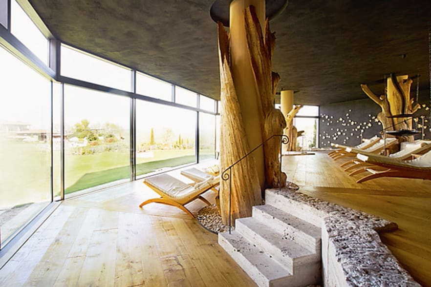 Eine Runde Joggen bei Sonnenaufgang auf dem hoteleigenen Joggingparcours oder dem Outdoor-Laufband mit herrlicher Aussicht. Anschliessend gehts in den 1000 Quadratmeter grossen Spa.