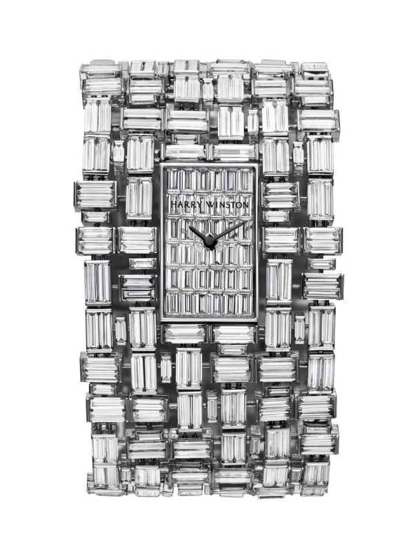 Wenns kostbar glitzert, ists von Harry Winston, dessen Gründer einmal sagte: "Diamanten sollten sich an die Haut der Trägerin schmiegen." Mit 386 Baguette-Diamanten in zwölf Grössen ist die Uhr Glacier so kunstvoll gefertigt, dass sich das Bracelet weich wie ein Seidenband anfühlt. Mit 76 lupenreinen Karat ein millionenschweres Einzelstück.