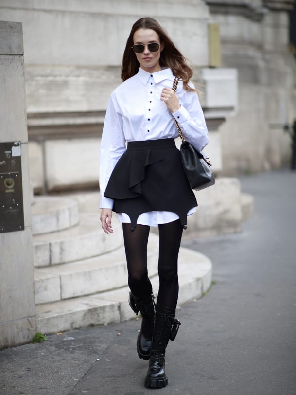 Auch die Street-Style-Stars und Besucher:innen der Modewoche geben sich richtig Mühe: Die Stilettos werden ausgepackt, die bunten Farben (in Kombination mit ganz viel Schwarz, natürlich) aus der Garderobe geholt und die teuersten Taschen um den Arm gehängt. Klar, dass sich da so einige Trends herauskristallisieren. Von sehr französischen Klischees bis zu schrägen Ausschnitten: Wir stellen euch fünf davon vor.
