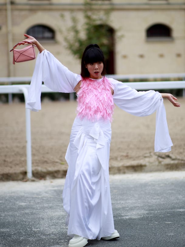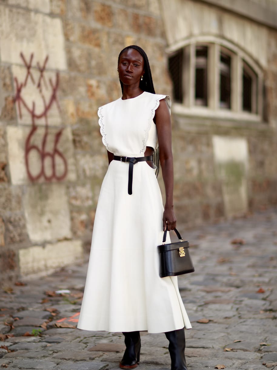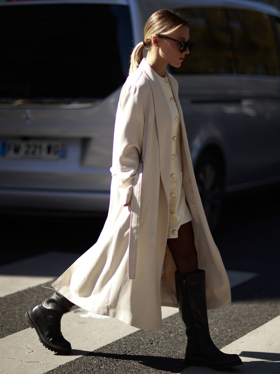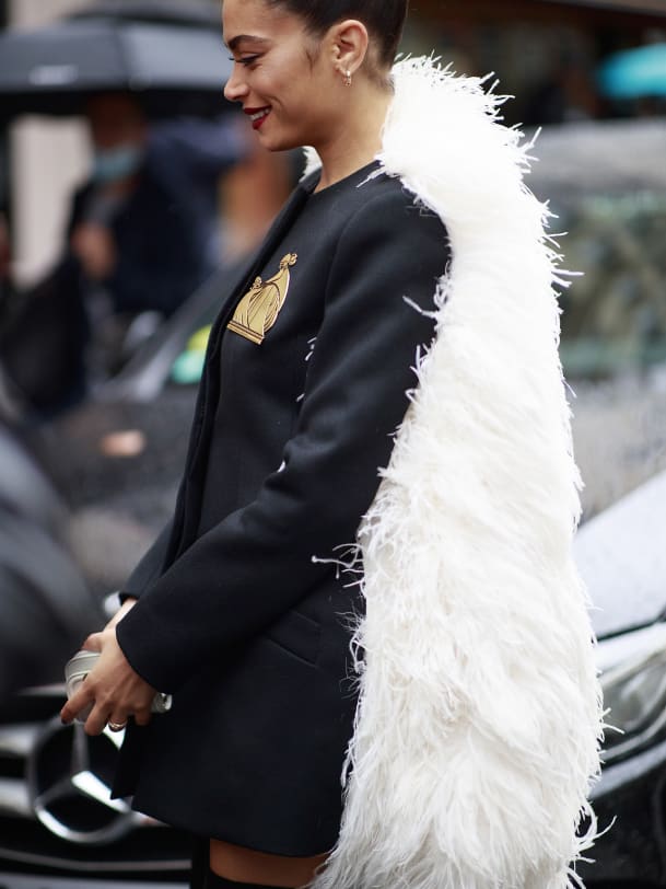 Bordeaux-Rot, Olivgrün, Senfgelb... Die typischen Herbstfarben locken, sobald das erste Blatt fällt. Doch sie haben dieses Jahr beim Pariser Street Style wenig Chance. Dafür ist ganz viel Weiss von Blüte bis Crème zu sehen: in langen Mänteln, fliessenden Kleidern und fedrigen Accessoires.