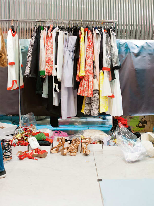 Später findet in der Rue St-Honoré die Präsentation von Paule Ka statt. Die Kollektion ist eine Fusion zwischen Retro und Futur tropical, eine originelle Inszenierung, in einem dschungelhaften Interieur gezeigt. Nach einer kurzen Mittagspause und einer Omelette nature geht es weiter zum Showroom von Paul Smith. Showroombesuche gehören wie die Shows zum Pflichtprogramm: Das Label Paul Smith präsentiert zwar seine neue Kollektion an einer Show in London, im Pariser Showroom kann man aber die einzelnen Teile nochmals en détail anschauen und befühlen.