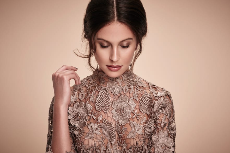 Make-up: Eren Bektas; Kleider: Natscha Muellerschoen Couture, Spitzentop Nude: Gestuz, Spitzentop Weiß: Baum und Pferdgarten, Schmuck: Tamara Comolli
