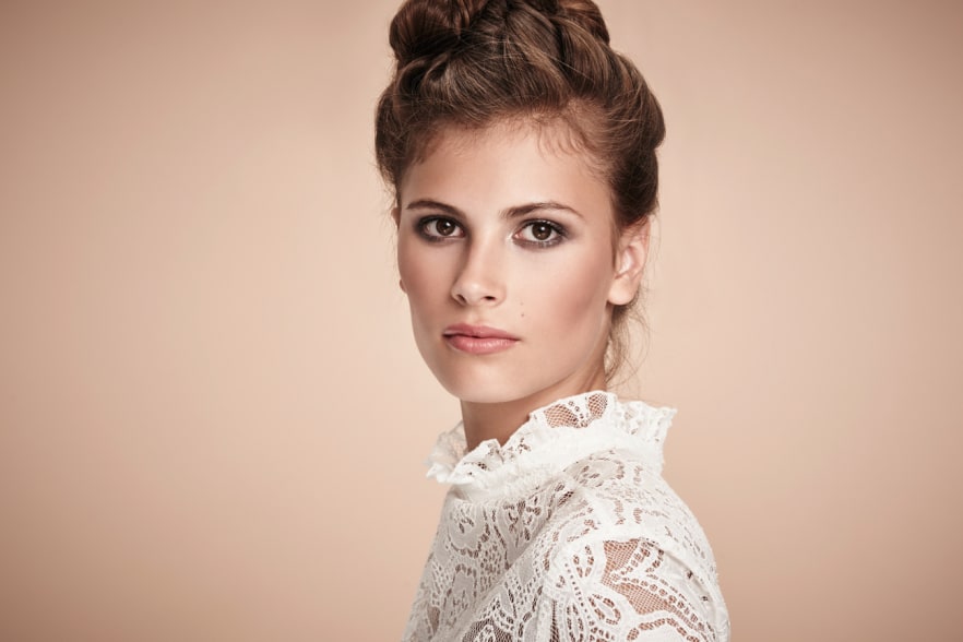 Make-up: Eren Bektas; Kleider: Natscha Muellerschoen Couture, Spitzentop Nude: Gestuz, Spitzentop Weiß: Baum und Pferdgarten, Schmuck: Tamara Comolli