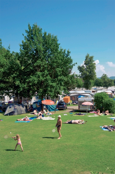 860 Plätze für Zelte und Caravans, fast alle mit Elektroanschluss, 350 mit Kabel-TV, direktem Trinkwasseranschluss, Kanalisation und W-Lan.