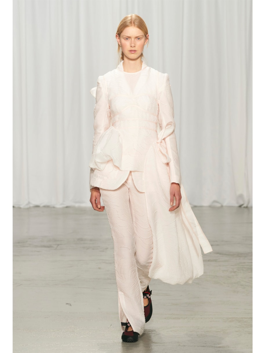 Cecilie Bahnsens Welt ist zuckersüss: Schleifen, Volants und Crêpe-Stoffe, mädchenhafte Schnitte an Models, die langsam und verträumt durch den Palais de Tokyo spazierten. Naiv – aber irgendwie auch voller Hoffnung. Eine Show zum Träumen.