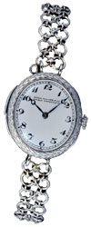 Die 1916 für eine wohlhabende englische Kundin angefertigte Damenuhr hat in den Geschichtsbüchern der Genfer Uhrenmanufaktur eine besondere Bedeutung: Das kleine Masterpiece war eine der ersten Armbanduhren der renommierten Genfer Uhrmacher, die sich später dann vor allem auf Herrenmodelle spezialisierten. Bemerkenswert war diese Uhr auch in ihrer Machart mit einem komplizierten Werk und der Minutenrepetition, die mit einem feinen Klang die Zeit anzeigte. Im letzten Jahr als neue Grande Complication unter dem Modellnamen Ladies First Réf. 7000 lanciert, ist sie bereits Objet de désir mit einer Wartezeit von zwei Jahren.