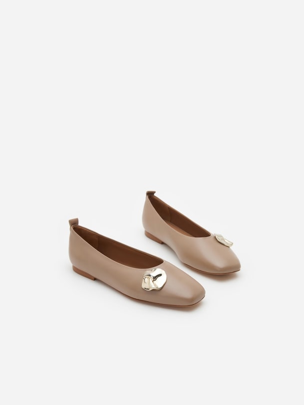 Beige Ballerinas aus Leder mit Brosche ca. 195 Fr. von Flattered