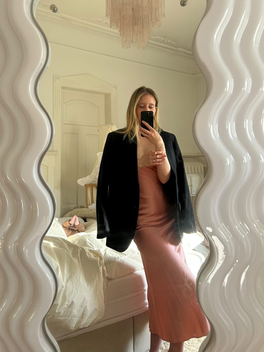 Beim Cocktail-Dresscode darf es gern etwas verspielter sein: Ich kombiniere eine kleine Tasche, in die wirklich nur das Nötigste passt. Grosse Statement-Ohrringe sind mein Geheimtrick – die pimpen sogar ein schlichtes Outfit auf. Meine Haare trage ich am liebsten zusammen in einem schlichten Knoten im Nacken. Mit genug Haarspray hält das auch, wenn die Nacht länger wird. Was ich gar nicht mag: Jacken oder Mäntel, die den ganzen Look ruinieren. Ein Regenschirm ist das Maximum, das ich wettertechnisch toleriere. Brands, die ich für solche Anlässe liebe: Farm Rio, Destree, Alemais." – Nina Rinderknecht, Mode Enthusiastin und Bookerin