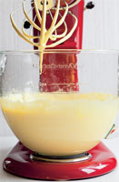Entweder kaltaufschlagen mit der Küchenmaschine: Eier, Eigelb und Zucker zu einer hellen, festen Crème aufschlagen (ergibt doppeltes Volumen).