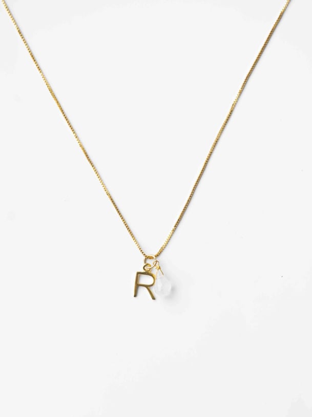 Buchstabenkette aus vergoldetem Messing mit Mondstein-Pendant, 149 Fr. von Tara Style