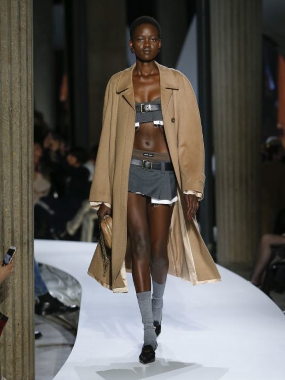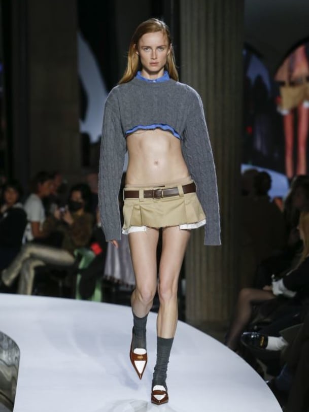 Bauchfrei ist ja schon eine ganze Weile angesagt, aber im nächsten Frühling rutschen nicht nur die Pulli-Säume noch weiter nach oben, sondern auch die Röcke nach unten. Besonders bei der Miu Miu-Show für SS2022 wurde klar, dass nicht nur Low Waist ein ganz grosses Thema werden wird, sondern auch die Low-Waist-Super-Mini-Skirts zurück sind. Welcome back to the years of early 2000 als "Sixpack in Six Weeks" noch legitime Schlagzeilen waren und Christina Aguileras "Dirrty" im Fitnessstudio rauf und runter lief. Wie gut sich dieses Bild wohl mit der doch recht lauten Body-Positivity-Debatte dieser Tage verträgt? Nicht sehr gut lässt das Casting der Miu-Miu-Show vermuten. Body-Diversität war hier nämlich gar kein Thema.