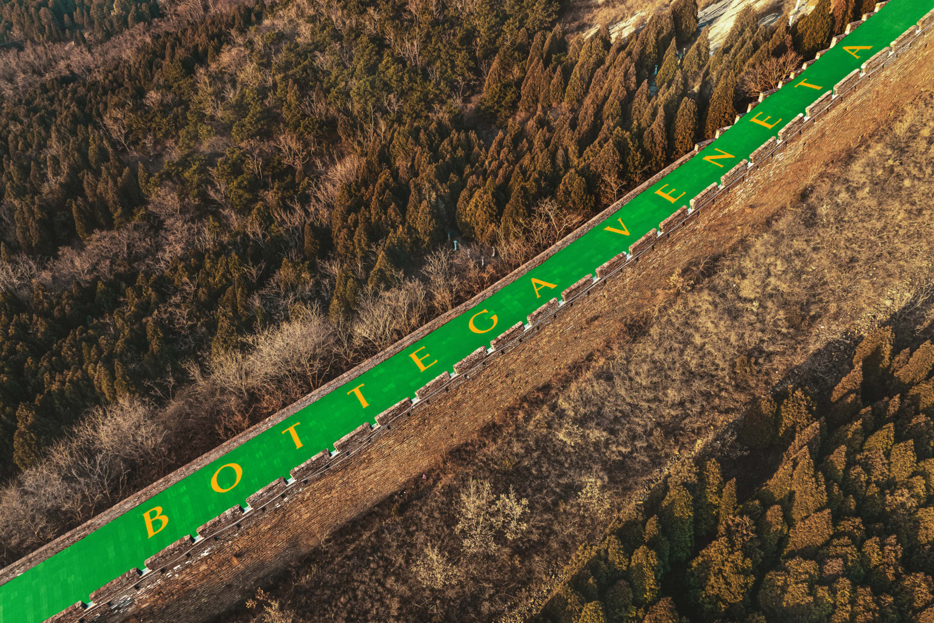 Wo es vor der Pandemie die Schauen waren, mit denen sich die Modehäuser gegenseitig zu überbieten versuchten, sind es heute die Werbestunts. Besonders gross denkt zurzeit Bottega Veneta. Das italienische Luxuslabel, das seit 2021 nicht mehr auf den sozialen Medien zu finden ist, hat nach dem berühmten Bondi Beach Pool in Sidney und dem Dach des kalifornischen Flughafens LAX nun einen Abschnitt der chinesischen Mauer mit einem Werbebanner bespielt. Die digitale Installation wünschte einerseits auf Chinesisch ein frohes neues Jahr – das Jahr des Tigers wird am 1. Februar 2022 eingeläutet – und zeigt im Wechsel das Logo von Bottega Veneta.