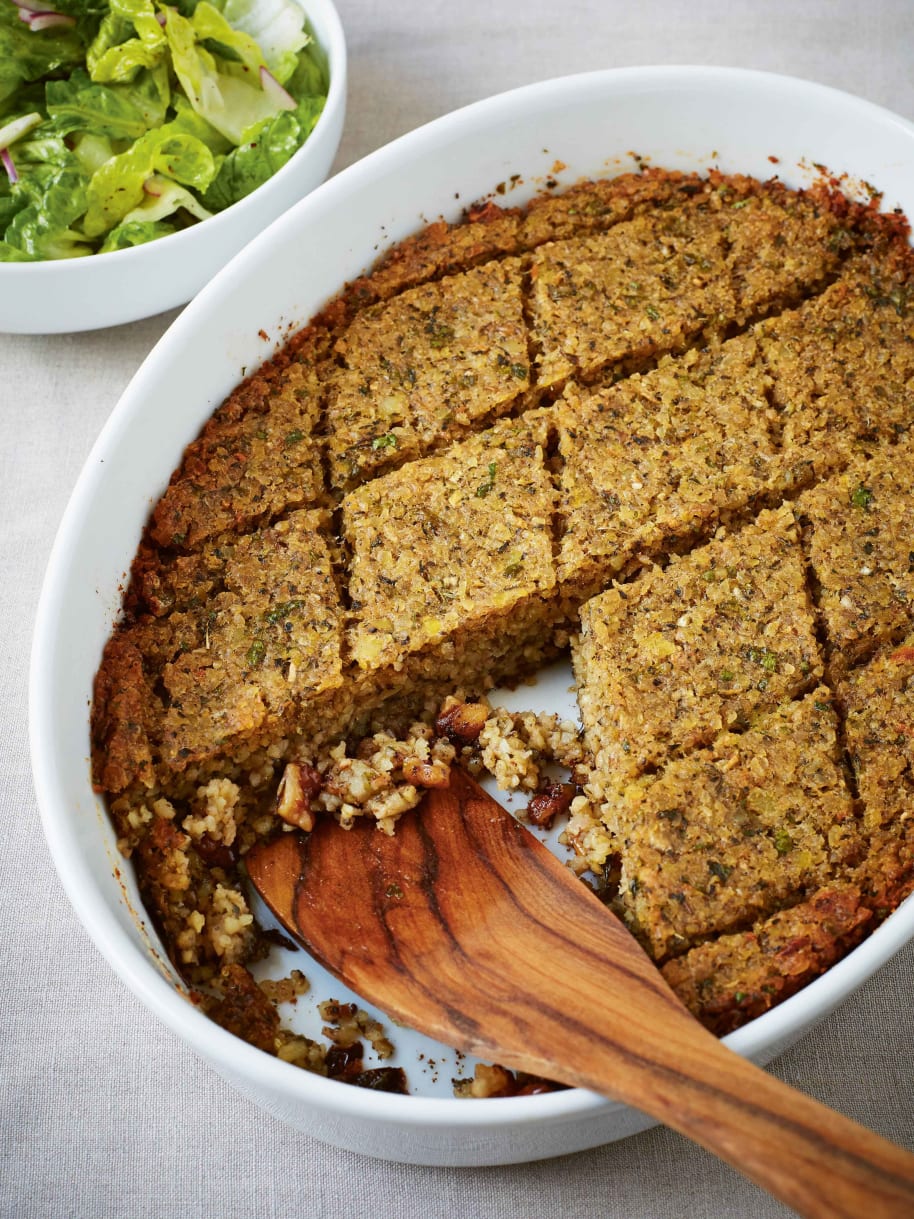 Kartoffel-Kibbeh mit Baumnusszwiebeln