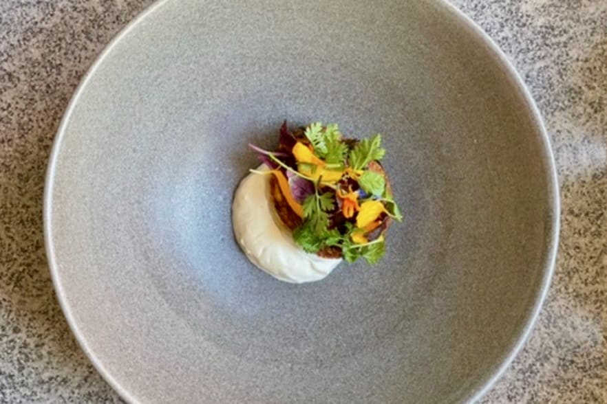 Eine "Bergackerbohnen-Falafel mit Rhabarber-Chutney".