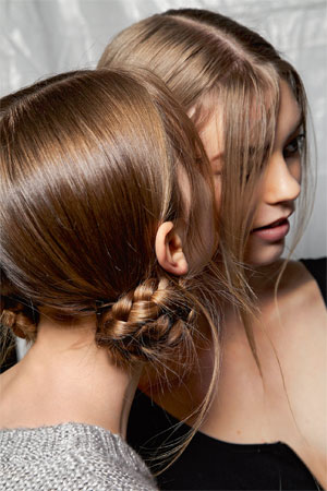 Haarpuder war backstage die Geheimwaffe für natürliche Looks mit Coolness und ein modernes, mattes Finish. Natürlich bei Nina Ricci (Foto), clean und simpel bei Akris und "very New York" bei Alexander Wang: Haarpuder lässt die Längen matt und undone wirken und sorgt am Ansatz für Volumen. Gestylt wird der Casuallook denn auch nicht mit der Rundbürste, sondern mit den Fingern.