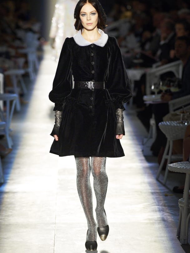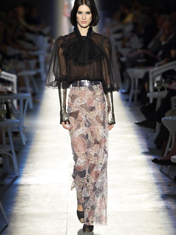 Karl Lagerfelds Interpretation von "New Vintage" war zwar nichts neues oder bahnbrechendes, funktionierte aber für das Haus Chanel: die üblichen Tweed-Kostüme, Looks in glitzerndem X-Mas-Feel und Abendkleider im Silber-Look. Highlight war aber das Hochzeitskleid, das Model Lindsey Wixson präsentieren durfte. Der Traum aus weissem Chiffon mit hohem Federkragen überzeugte vollends.