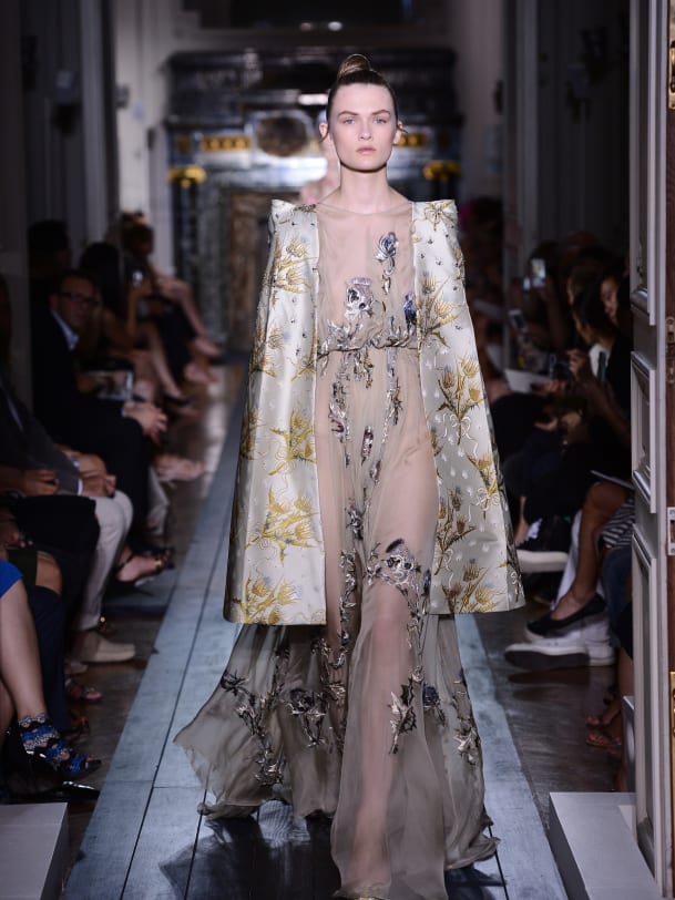 Langärmelige Abendkleider in Chiffon, bodenlange Capes aus Seide und klassische Shiloutten - Die Kollektion der beiden Designer Maria Grazia Chiuri und Pier Paolo Piccioli für Valentino liess an "Game of Thrones" denken; die neue It-Serie, welche im Mittelalter spielt.