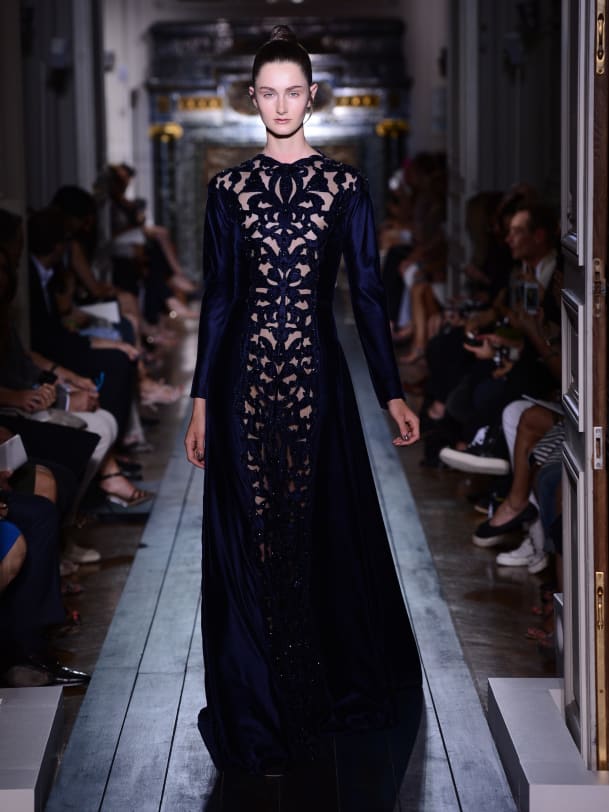 Nachtblaue Abendkleider präsentierte Valentino bei der Haute Couture Show gestern in Paris.