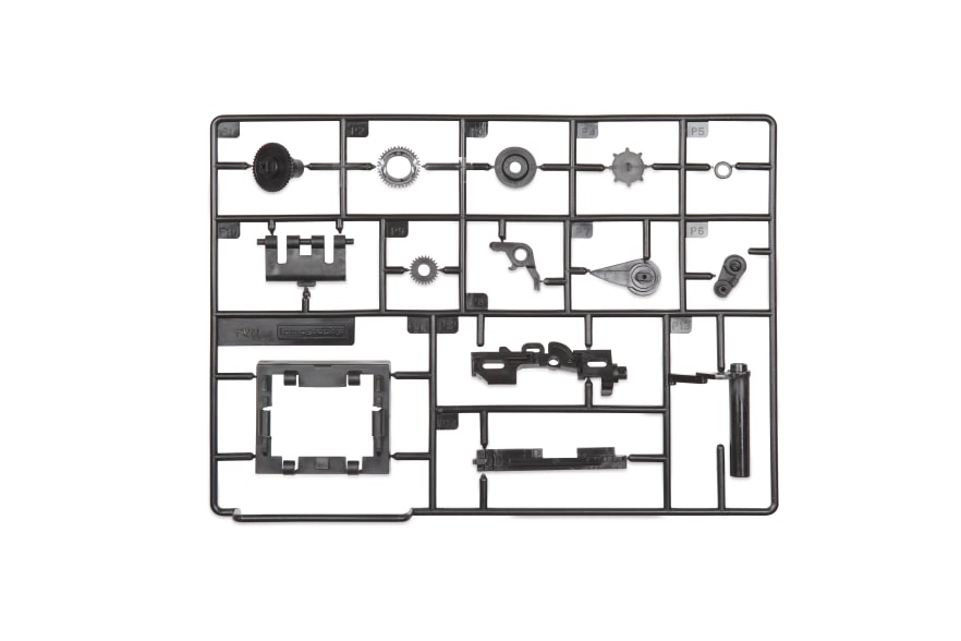 Die einzelnen Teile sind in ein Plastikgitter eingeschweisst