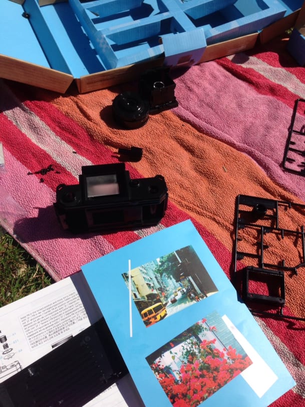 Mit der etwas angespannt eingeforderten Hilfe des Liebsten, der gemütlich in der Sonne liegt, schaffe ich es, die Kamera bis zum letzten Schräubchen zusammenzubauen. Und nachdem der Ärger um ein paar Fehlhandlungen verflogen ist und ich die ersten paar Male abgedrückt habe, bin ich begeistert. Als Laie habe ich einiges gelernt, wie so eine Kamera funktioniert, welches Rädchen was weiterdreht, wie der Film transportiert wird und wie das mit der reflektierenden Linse funktioniert.