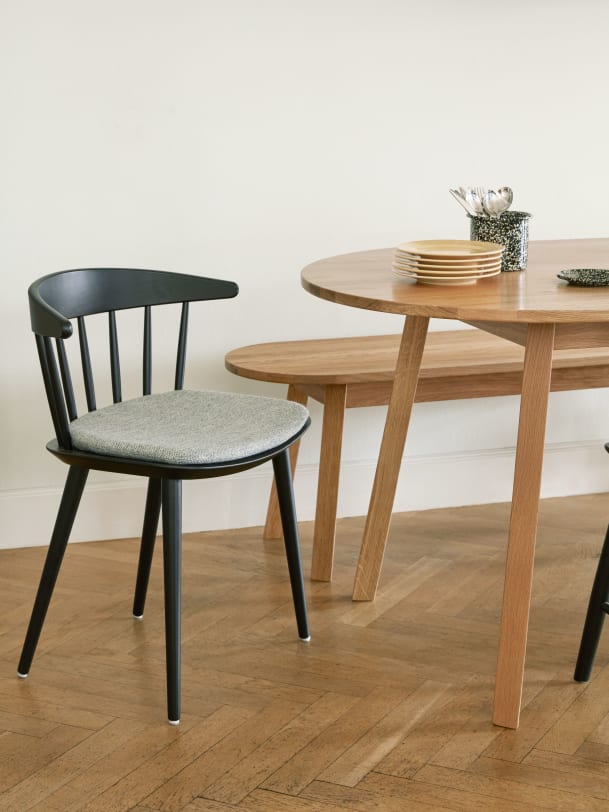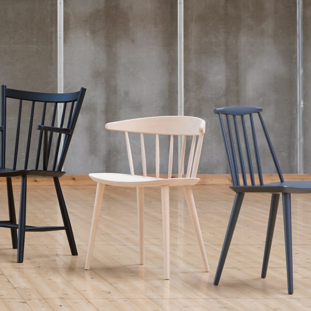 Wir kennen ihn wohl alle aus Filmen und Serien: Den Windsor-Stuhl mit seiner typischen Stäbchenlehne. Ein Landhausstuhl, der sich in England sowie in Nordamerika seit dem 18. Jahrhundert grosser Beliebtheit erfreut. Eben dieser Windsor Stuhl stand den Modellen J104, J110 und J77 des dänischen Herstellers Hay Vorbild – der ihn dann extra für uns in die Neuzeit übersetzt hat.