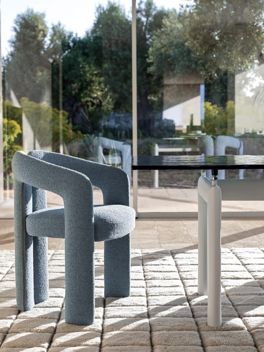 Ist er noch ein Stuhl oder gar schon ein Sessel? Egal! Dudet, entworfen von der spanischen Designerin Patricia Urquiola für Cassina, macht sich als Sitzunterlage am Schreibtisch genauso gut wie als Esstischstuhl oder Lesesessel. Er ist komplett recycelbar und erinnert vom Design her an die Seventies.
