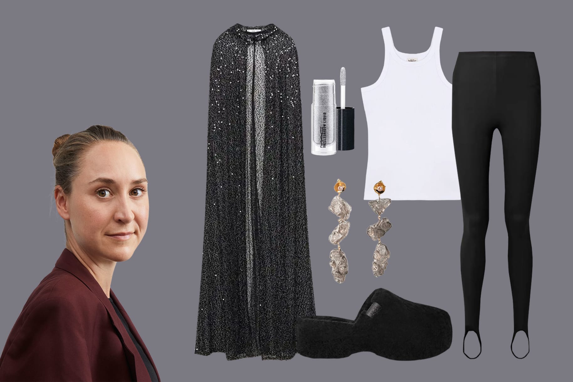 Im Grunde sitzen meine Eltern und ich an Weihnachten am Tisch wie an jedem anderen Tag auch: fressend – nur in noch grösseren Mengen. Sich dafür besonders rauszuputzen, erscheint den Leitners jährlich albern. Drum trage ich das, was sich bewährt hat: Leggings (weil dehnbar in alle Richtungen), ein Tanktop (wird heiss beim Raclette) und quasi Hausschuhe (man geht eh nicht raus). Für einen Funken Magie werfe ich ein glitzerndes Zaubercape über – so wird auch das stetig wachsende Food Baby quasi unsichtbar.