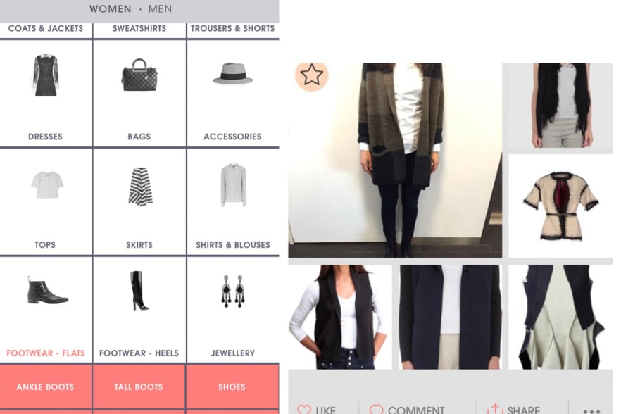 Das in London basierte Start-up ASAP54 lancierte seine erste Mode-Erkennungs-App bereits im Jahr 2013. Das Prinzip ist ganz einfach: Foto des Outfits machen, Foto so gut wie möglich schneiden und im System angeben, nach welchem Kleidungsstück man sucht.