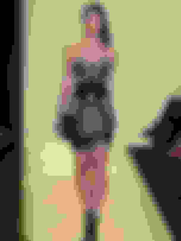 Eng, enger, Hervé Leger für Max Azria: Wer in diesen Kreationen eine gute Figur machen will, muss eine gute Figur mitbringen. Die Musik gab die Devis vor: Das Geheul von Motorrädern machte klar: Frauen, die diese Kollektion tragen, wollen Gas geben und herzeigen, was sie haben - in kurzen Kleidern und auf hochhakigen Schuhen mit Goldabsatz. Breite Ledergürtel und Lederkorsagen gehören ebenso zum Look wie bleiche Grautöne, Stahlblau und graphische Muster. Inspiration waren die Frauen von Gee`s Bend in Alabama und ihre Quilts. Sehr schön und virtuos umgesetzt in der Kollektion ist entsprechend die Technik, die diese berühmten amerikanischen Quiltdecken ausmacht.
