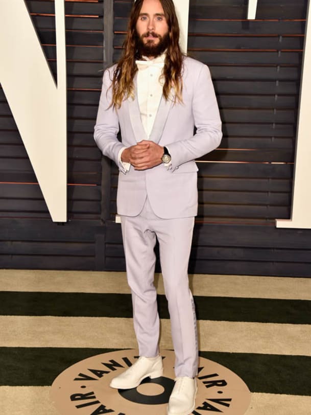 Er darf nicht fehlen unter den Oscar-Leuten mit Geschmack: Jared Leto zeigt Mut im hellgraublauen Givenchy-Anzug und den weissen Schuhen, die ihn auch schon zu früheren Anlässen begleitet haben.