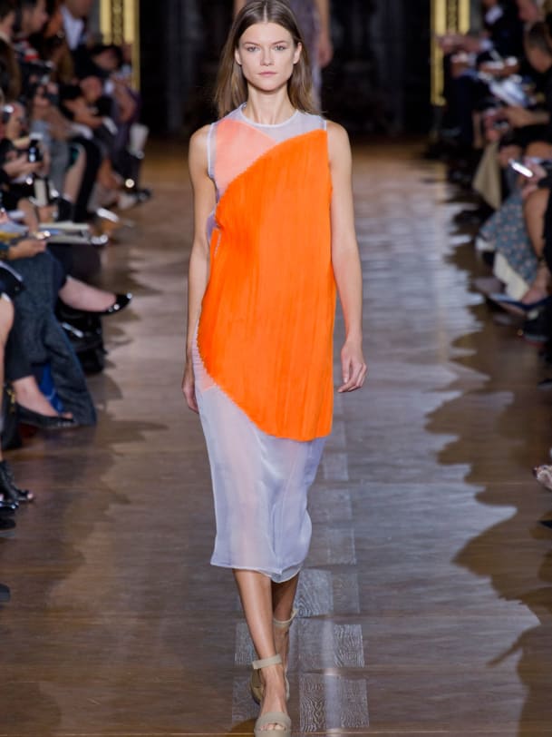 Sport Chic, Lagen-Look und Oversize in frohen Farben waren bei Stella McCartney angesagt und die Models schwebten auf Wedges mit Plexiglas-Absätzen über den Laufsteg.