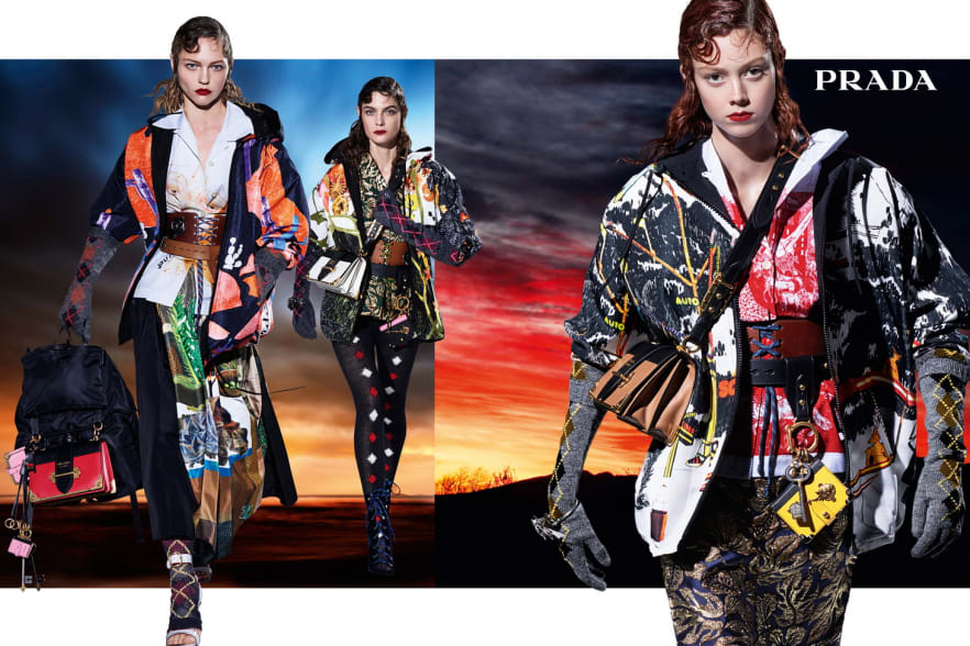 Mit der aktuellen Werbekampagne für die Herbst- und Wintersaison setzt Prada neue Massstäbe: Die Kollektion wird von 27 Models präsentiert – unter ihnen Freja Beha Erichsen, Milla Jovovich, Julia Nobis und Fei Fei Sun. Starfotograf Steven Meisel setzte die Kampagne um. Zu sehen sind die Models in Layer-Looks mit Leder, Brokat, Fell, Satin und schwerem Strick auf künstlich kreierten teils fluoreszierenden Hintergrundcollagen aus Sonnenaufgängen oder Sternbildern. Mit der Entscheidung gegen ein Kampagnengesicht und für eine Vielzahl von Models hebt Prada die Individualität von Frauen hervor.
