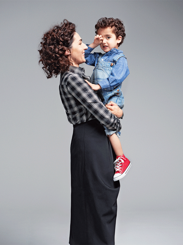 (Karohemd ca. 720 Fr. und Bleistiftjupe geschlitzt mit Drapierung ca. 880 Fr., beides von Michael Kors. Leonidas: Hemd 19.90 Fr. und Latzhose 29 Fr., beides von H&M. Turnschuhe AllStars von Converse 69 Fr. bei Pomp it up)