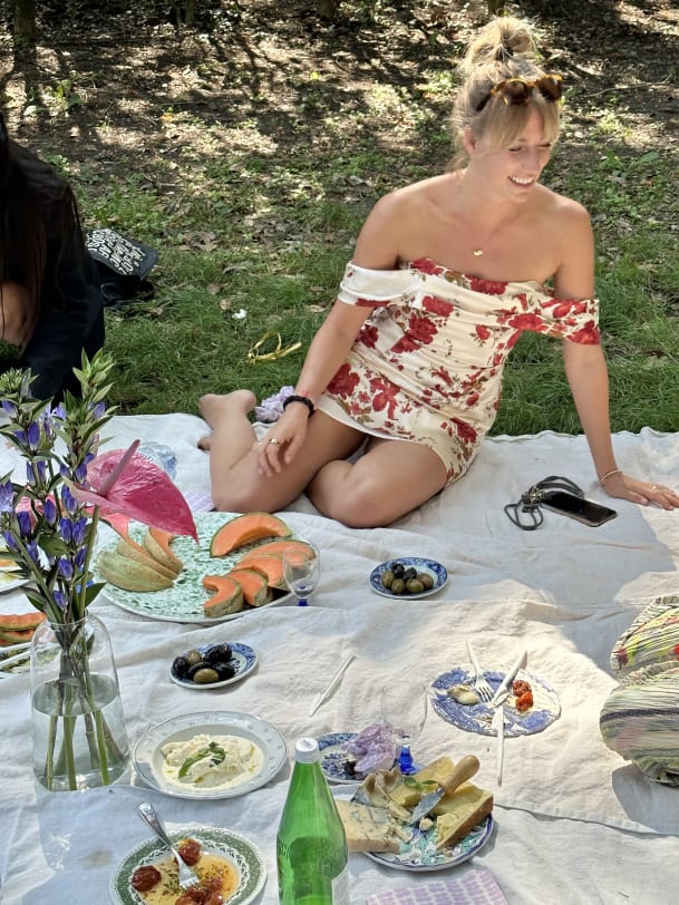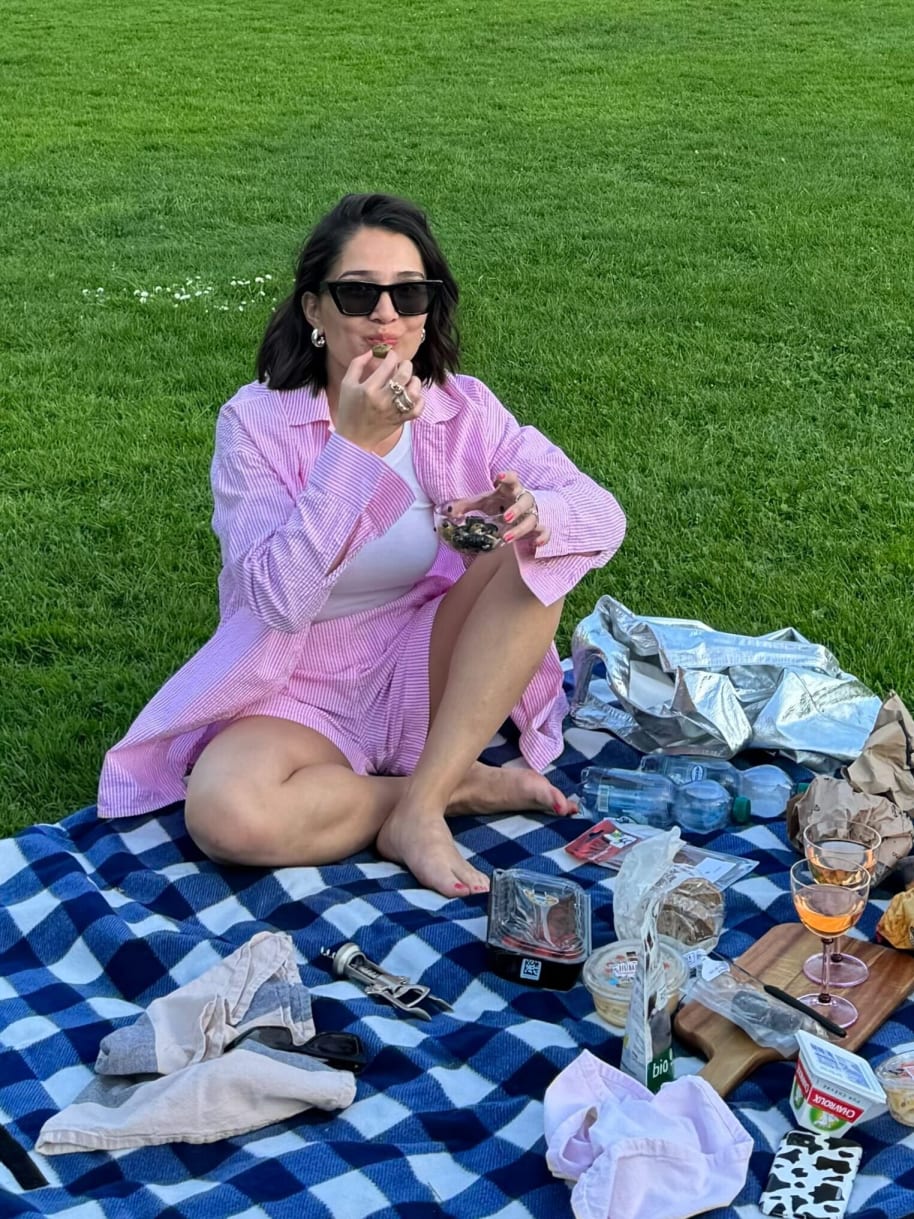 Darunter blitzt ein romantisches Bralette von Lioa Lingerie hervor, auf den Wangen trage ich "Venus" von Goop Beauty. Da ich offenbar schon zu lange in L.A. und clearly ein Trendopfer bin, trage ich glücklich meinen Stanley Cup in der Farbe "Warm Serene Brushstrokes" (!) herum. Und noch was: Im Frühling kommen ja die Babys – meinem suche ich schon mal einen süssen Strampler von Tartine et Chocolat aus. It’s a girl! – Editor-at-Large Jacqueline Krause-Blouin