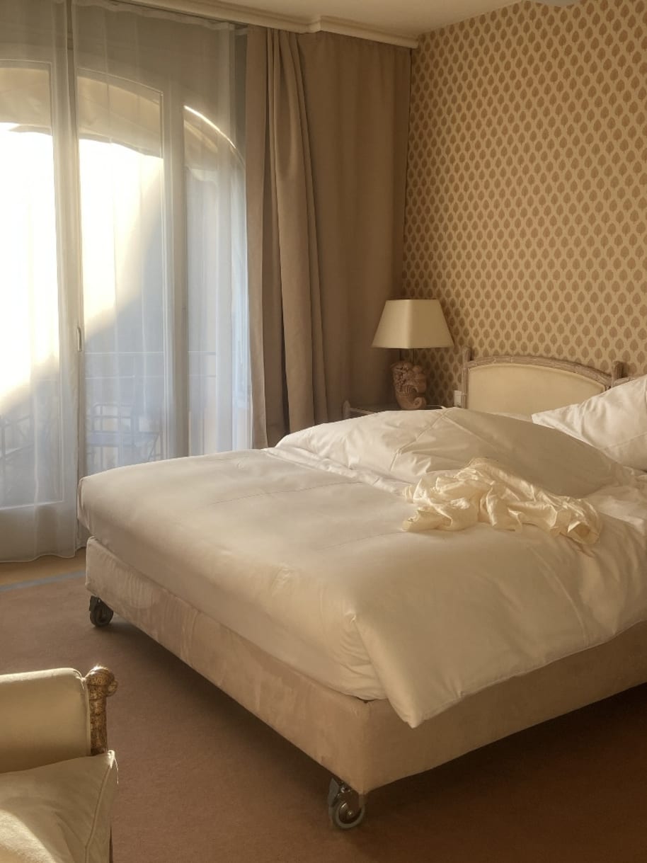 Das war mein Highlight: Die Sonne, die unsere Suite mit den cremefarbenen und blauen Tapeten und verschnörkelten Möbeln in warmes Licht getaucht hat, während draussen der See glitzert. Unbezahlbar.