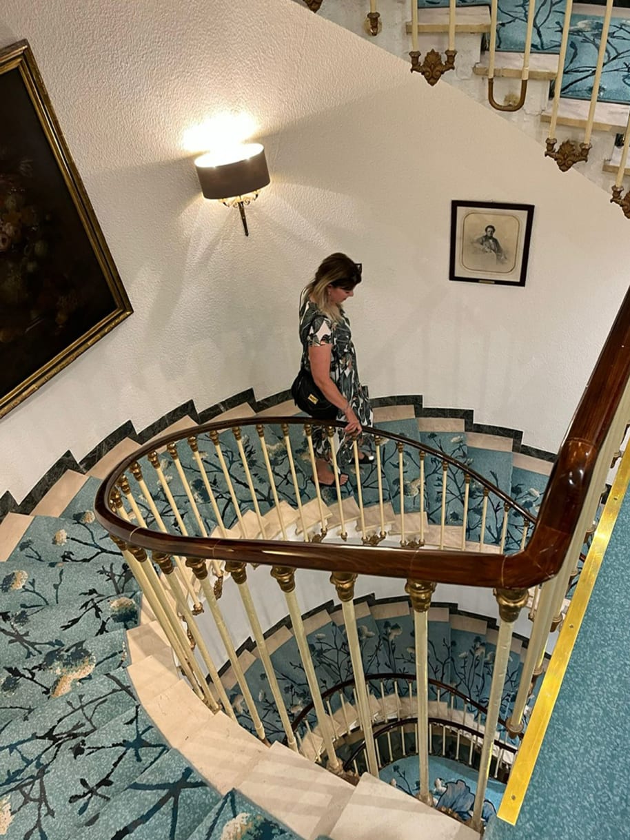 Diesen Vibe hat das Hotel: Es ist ein gelungener Mix aus alt und neu. Ein Teil der Zimmer wurde vor zwei Jahren im Art-Deco-Stil renoviert, mit wunderschönen Tapeten, Samtsesseln und Mosaikbädern. Ebenso kommen Lobby und Restaurant im neuen, luftig farbigen Gewand daher. Das ursprüngliche Treppenhaus mit seinem mintfarbenen Blumenteppich und dem goldenen Geländer passt erstaunlich gut zum neuen Mix.