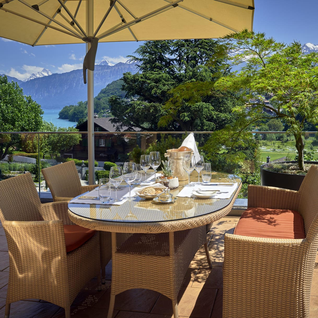 Mein Lieblingsort im Hotel: unsere Privatterrasse mit den gelben Sonnenliegen. Ich war noch nie in einem Hotel mit so einem grossen Aussenbereich ganz für sich alleine! Der Blick auf den Vierwaldstättersee und den üppig grünen Bürgenstock war zu jeder Tageszeit atemberaubend. Eigentlich müsste man das Zimmer gar nicht verlassen (auf jeder Etage gibts auch noch Kaffee und Tee von Sirocco à discretion) – wenn der Hotelgarten nicht so schön und der Sprung in den glasklaren See nicht so verlockend wäre. Fragt beim Buchen also unbedingt nach einem der begehrten Terrassen-Zimmer im ersten Stock oder zumindest einem Zimmer mit Seesicht.