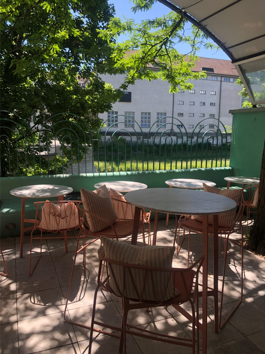 Mein Lieblingsort im Hotel: Die Bibliothek bietet eine kuratierte Auswahl von Designbüchern an, mit denen man sich mit einem Kaffee oder Tee auf den Balkon setzen kann. Von dort aus hat man eine schöne Aussicht auf die plätschernde Sihl.