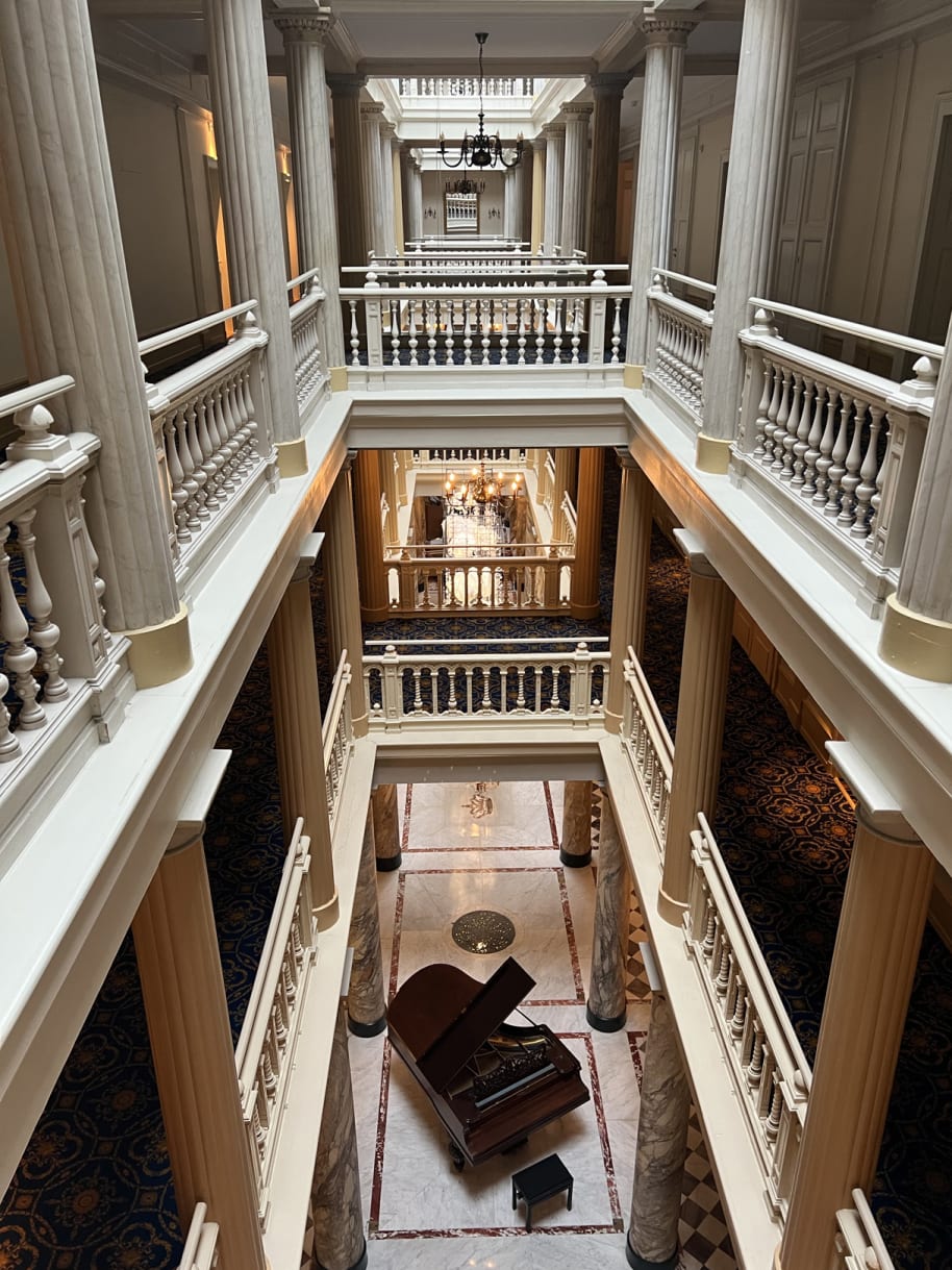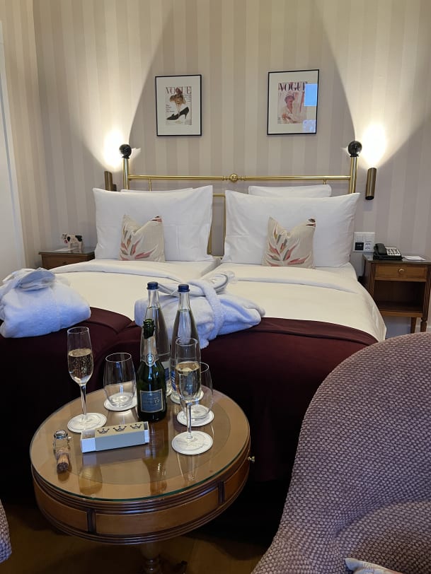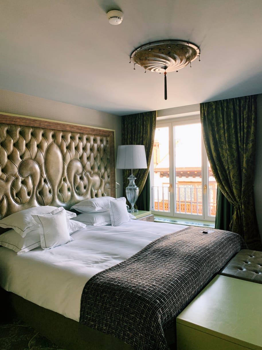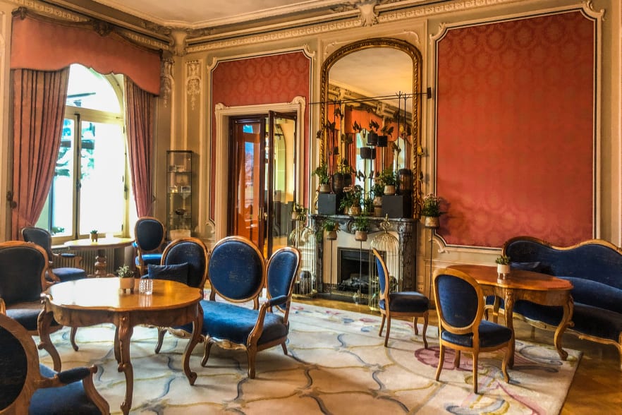 Mein erster Eindruck: Grosser Auftritt gefällig? Schon die imposante Fassade des Hotels strahlt viel alte Grandezza aus. Im Innern verliebte ich mich augenblicklich in die Kombination aus Jugendstil und modernen Elementen. Als grosser Belle-Époque-Fan kam ich aus dem Staunen nicht mehr heraus: Die Stuckaturen! Die Bronze-Lampen! Die originalen Seidentapeten!