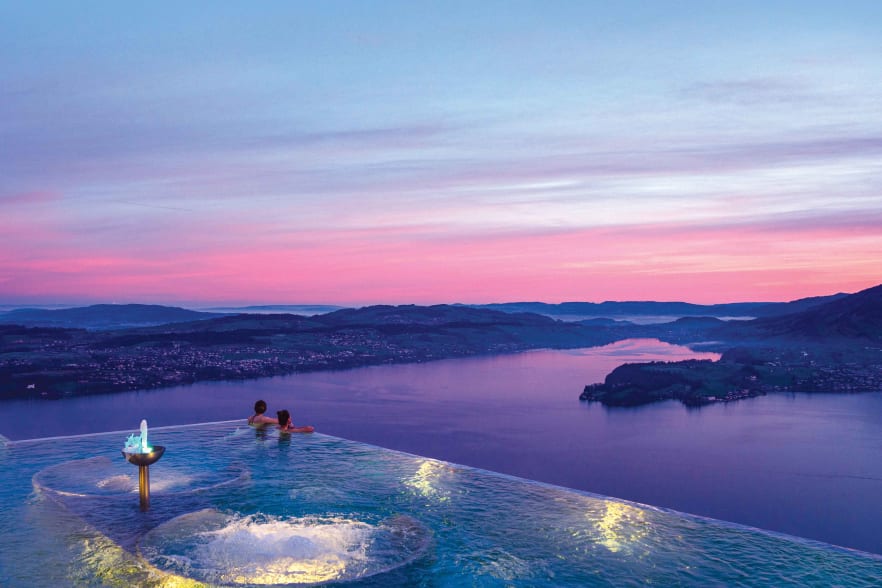 Diesen Vibe hat das Hotel: Was für eine Parallelwelt! Wer sich komplett aus dem Weltgeschehen ausklinken will, ist auf Planet "Bürgenstock" richtig. Die Newslage, die Uhrzeit, das eigentliche Leben – all das spielt keine Rolle mehr, sobald man hier eingecheckt hat.
